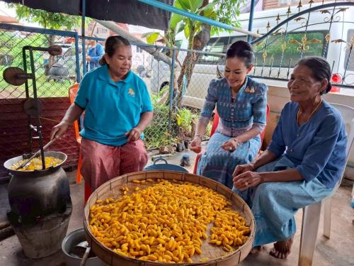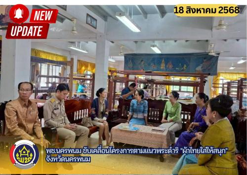 ในการนี้ นางกนกรัชต์ วงษ์กาฬสินธุ์ พัฒนาการจังหวัดนครพนม พร้อมด้วยนางสาวณปภัช ทรงบัณฑิตย์ นักวิชาการพัฒนาชุมชำนาญการ ร่วมติดตามและสนับสนุนโครงการตามแนวพระดำริ "ผ้าไทยใส่ให้สนุก"