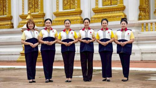 นางธนวัน อุ่นเพชรวรากร นายกเหล่ากาชาดจังหวัดนครพนม พร้อมด้วยนางสุภาลักษณ์ ใครบุตร และนางพาณี พิมพนิตย์ รองนายกเหล่ากาชาดจังหวัดนครพนม รวมทั้งกรรมการเหล่ากาชาดจังหวัดนครพนม ติดตามและส่งเสริมโครงการตามแนวพระดำริ “ผ้าไทยใส่ให้สนุก”