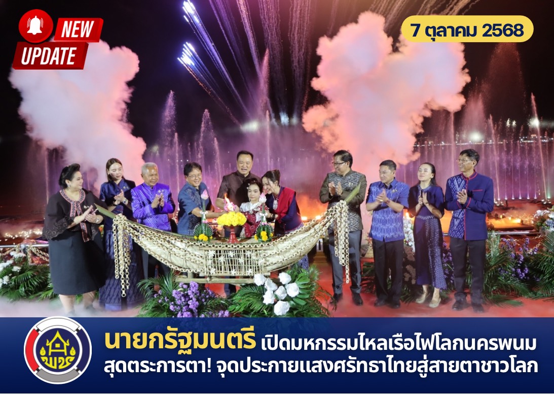 วันนี้ (7 ต.ค. 68) เวลา 19.00 น. ณ ลานพิธีเปิดบริเวณหน้าวัดโพธิ์ศรี ตำบลในเมือง อำเภอเมืองนครพนม จังหวัดนครพนม นายอนุทิน ชาญวีรกูล นายกรัฐมนตรี และรัฐมนตรีว่าการกระทรวงมหาดไทย เป็นประธานพิธีเปิดงานมหกรรมไหลเรือไฟโลก จังหวัดนครพนม ประจำปี 2568 และงานยกระดับเทศกาลเรือไฟไทยสู่เรือไฟโลก โดยมี นายวรวิทย์ พิมพนิตย์ รองผู้ว่าราชการจังหวัดนครพนม รักษาราชการแทนผู้ว่าราชการจังหวัดนครพนม กล่าวรายงานการจัดกิจกรรม ในการนี้ นายสุรศักดิ์ อักษรกุล อธิบดีกรมการพัฒนาชุมชน นายสุรพล แก้วอินธิ ผู้อำนวยการสำนักส่งเสริมภูมิปัญญาท้องถิ่นและวิสาหกิจชุมชน นางกนกรัชต์ วงษ์กาฬสินธุ์ พัฒนาการจังหวัดนครพนม พร้อมด้วยผู้อำนวยงานกลุ่มงาน สำนักงานพัฒนาชุมชนจังหวัดนครพนม ร่วมเป็นเกียรติในพิธีเปิดด้วย