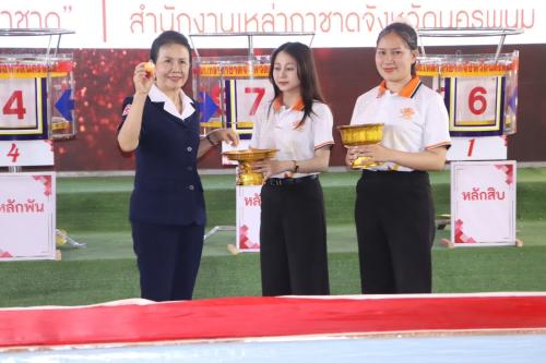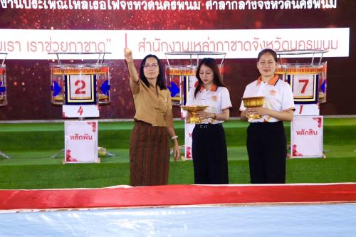 ในการนี้ นางกนกรัชต์ วงษ์กาฬสินธุ์ พัฒนาการจังหวัดนครพนม ร่วมออกรางวัลสลากกาชาดการกุศล ดังกล่าว