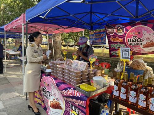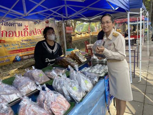 นางกนกรัชต์ วงษ์กาฬสินธุ์ พัฒนาการจังหวัดนครพนม พร้อมด้วยผู้อำนวยการกลุ่มงาน ข้าราชการและเจ้าหน้าที่สำนักงานพัฒนาชุมชนจังหวัดนครพนม ร่วมกิจกรรมและเลือกซื้อสินค้าสนับสนุนผู้ประกอบการ ที่มาร่วมจำหน่าย “ตลาดชุมชนนครพนมสุขใจ” ภายใต้แนวคิด “โอทอปเด็ด เกษตรปลอดภัย พาณิชย์ใส่ใจ @นครพนม” เพื่อส่งเสริมการจำหน่ายสินค้า OTOP และผลผลิตทางการเกษตรคุณภาพจากชุมชน พร้อมขับเคลื่อนโครงการ “คนละครึ่ง พลัส” ซึ่งสำนักงานพัฒนาชุมชนจังหวัดนครพนม ร่วมกับหน่วยงาน 9 ภาคี จัดกิจกรรมในวันนี้ โดยมี ผู้ประกอบ OTOP เกษตรกร ร้านค้าพาณิชย์ในจังหวัดนครพนมขนขบวนสินค้าหลากหลายประเภท มาจำหน่ายรวมกว่า 26 ร้านค้า