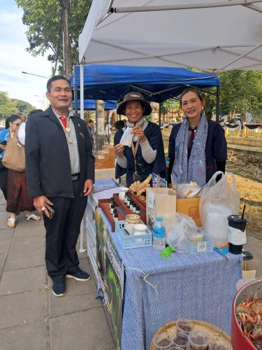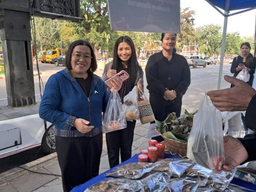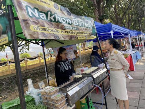 สำหรับตลาดชุมชนนครพนมสุขใจจะจัดเป็นประจำทุกวันศุกร์ เวลา 07.00–12.00 น. เพื่อสนับสนุนผู้ประกอบการ OTOP และเกษตรกรในพื้นที่โดยมุ่งเพิ่มช่องทางจำหน่ายสินค้าในเขตตัวเมือง และกระตุ้นเศรษฐกิจชุมชนให้เกิดการหมุนเวียนรายได้ภายในพื้นที่อย่างต่อเนื่อง โดยกิจกรรมดังกล่าวถือเป็นกลไกสำคัญในการเชื่อมโยงผู้ผลิตและผู้ประกอบการท้องถิ่นเข้ากับผู้บริโภค โดยใช้ “ตลาด” เป็นพื้นที่ในการพบปะระหว่างผู้ขายและผู้ซื้อ และใช้โครงการ “คนละครึ่ง พลัส” เป็นแรงกระตุ้นให้เกิดการใช้จ่ายซื้อสินค้า OTOP และผลิตภัณฑ์ชุมชน ประชาชนในพื้นที่สามารถใช้สิทธิได้สะดวกและเกิดการหมุนเวียนเงินภายในชุมชนอย่างแท้จริง ส่งผลให้เศรษฐกิจฐานรากของจังหวัดนครพนมมีความเข้มแข็งและเติบโตอย่างยั่งยืน โดยในวันนี้มียอดจำหน่ายรวมกว่า 69,250 บาท