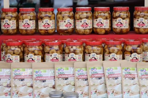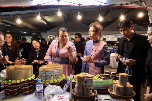 ผลิตภัณฑ์นวัตกรรมที่นำมาจัดแสดงและจำหน่ายในครั้งนี้ จำนวน 15 ผลิตภัณฑ์ ได้แก่ น้ำพริกปลาส้มผสมหนังปลา, ไส้กรอกเห็ดสมุนไพร, หนังกบสมุนไพรสามรส, ยอแซ่บ (หมูยออบกรอบ), กัมมีข้าวฮางไรซ์เบอร์รี, ข้าวไรซ์เบอร์รีผสมธัญพืชรวมอบกรอบ, ข้าวเม่าทรงเครื่อง, กะละแมธัญพืช (Energy Boom), มินิคุกกี้สับปะรด, เส้นก๋วยจั๊บเห็ดกึ่งสำเร็จรูปพร้อมปรุง (เส้นสด), ผงทุเรียน, รวมมิตรน้ำพริกแม่เชอร์ 5 รสชาติ, ผงกระเทียม, เห็ดแท่งปรุงรสอบกรอบ และผงสมุนไพรแช่เท้า ภายใต้สโลแกน “อร่อยและดีต่อใจ ผู้ให้และผู้รับ”