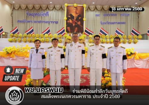 ว่าที่พันตรี อดิศักดิ์ น้อยสุวรรณ ผู้ว่าราชการจังหวัดนครพนม เป็นประธานนำคณะหัวหน้าส่วนราชการ ศาล ทหาร ตำรวจ รองผู้ว่าราชการจังหวัด เหล่ากาชาดจังหวัด ข้าราชการ และเจ้าหน้าที่ ร่วมประกอบพิธีวางพานพุ่มดอกไม้ถวายราชสักการะพระบรมสาทิสลักษณ์สมเด็จพระนเรศวรมหาราช เนื่องในวันยุทธหัตถี ประจำปี 2569 พร้อมกล่าวคำถวายราชสดุดีเฉลิมพระเกียรติ เพื่อน้อมรำลึกถึงพระมหากรุณาธิคุณและเหตุการณ์สำคัญทางประวัติศาสตร์ของชาติไทยในสมัยกรุงศรีอยุธยา