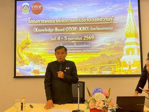 ทั้งนี้ จังหวัดนครพนม โดยสำนักงานพัฒนาชุมชนจังหวัดนครพนม จัดอบรมโครงการพัฒนาศักยภาพเครือข่ายองค์ความรู้ (Knowledge-Based OTOP : KBO) จังหวัดนครพนม ดำเนินการระหว่างวันที่ 4 – 5 กุมภาพันธ์ 2569 ณ ห้องประชุมนาคราช โรงแรมแม่โขงเฮอริเทจ ตำบลในเมือง อำเภอเมืองนครพนม จังหวัดนครพนม โดยมีวัตถุประสงค์เพื่อส่งเสริมให้คณะกรรมการเครือข่ายองค์ความรู้ (Knowledge-Based OTOP : KBO) จังหวัด เป็นศูนย์กลางในการให้ความช่วยเหลือและสนับสนุนการพัฒนาขีดความสามารถของผู้ผลิต ผู้ประกอบการ OTOP ในการยกระดับการพัฒนาผลิตภัณฑ์ให้มีคุณภาพมาตรฐาน มีมูลค่าเพิ่ม สร้างสรรค์นวัตกรรม และเผยแพร่ประชาสัมพันธ์ผลการดำเนินงานของเครือข่ายองค์ความรู้ (Knowledge - Based OTOP : KBO) จังหวัด กลุ่มเป้าหมายที่เข้าร่วมอบรม ประกอบด้วย 1) ผู้ผลิต ผู้ประกอบการ OTOP ประเภทกลุ่มผู้ผลิตชุมชน จำนวน 20 คน และ 2) คณะกรรมการเครือข่าย KBO จังหวัด จำนวน 20 คน รวมทั้งสิ้น 40 คน มีเนื้อหาหลักสูตรการอบรม ดังนี้