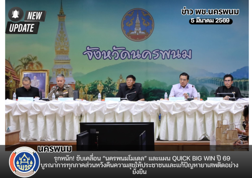 วันที่ 5 มีนาคม 2569 เวลา 13.30 น. ณ ห้องประชุมพระธาตุพนม ชั้น 5 ศาลากลางจังหวัดนครพนม (หลังใหม่)