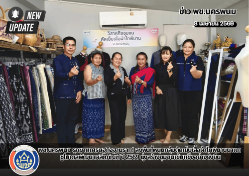 วันที่ 8 เมษายน 2569 เวลา 14.00 น. ณ กลุ่มวิสาหกิจชุมชนตัดเย็บเสื้อผ้าไทพิมาน อำเภอนาแก จังหวัดนครพนม